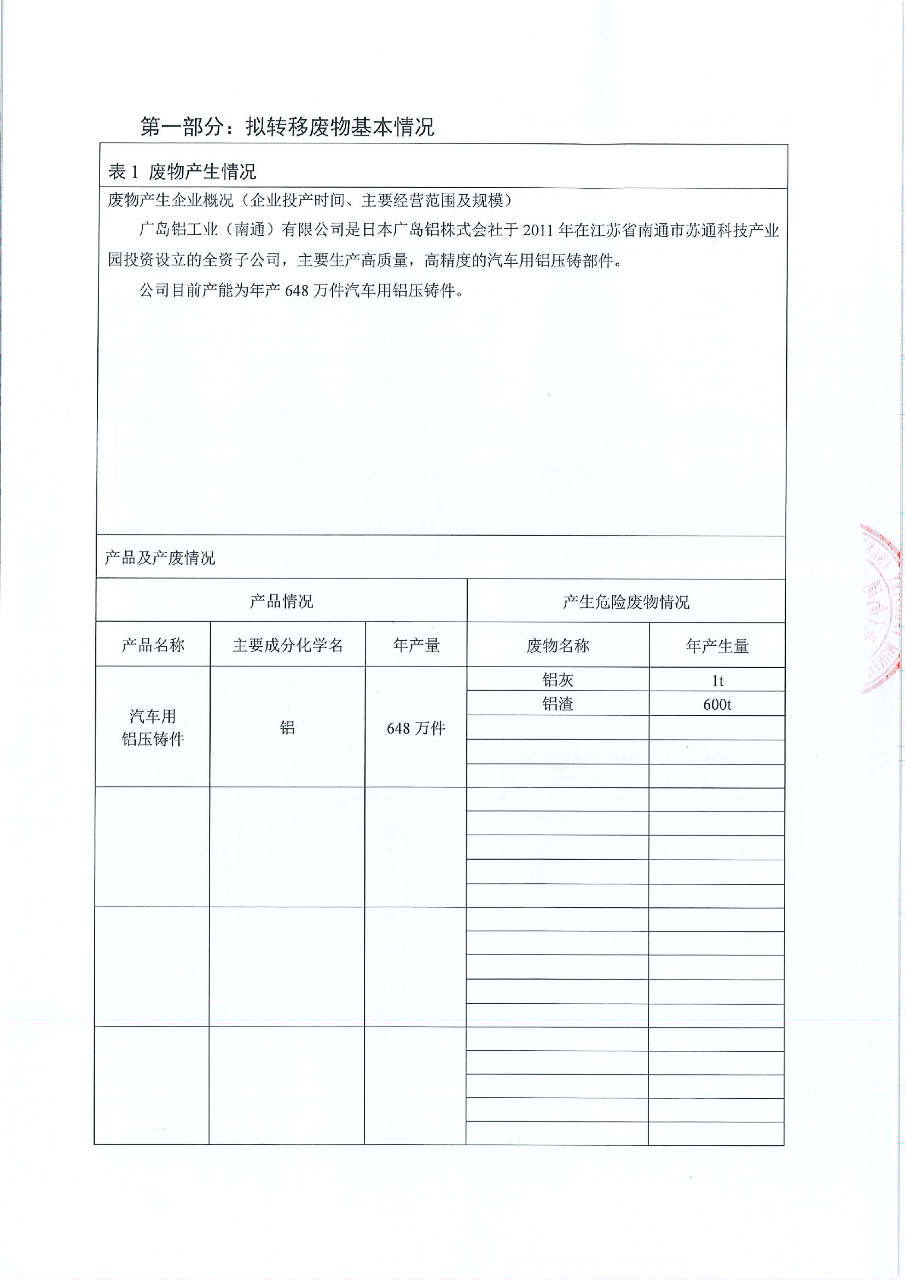 廣島鋁工業(yè)(南通)有限公司固體(危險廢物)廢物跨省轉(zhuǎn)移實施方案(2026年計劃)